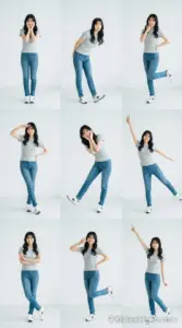 任务:根据上传的人物照片中央:放置人物全身单个人物抠出来的实拍原图。周围:环绕配置以下实拍素材: