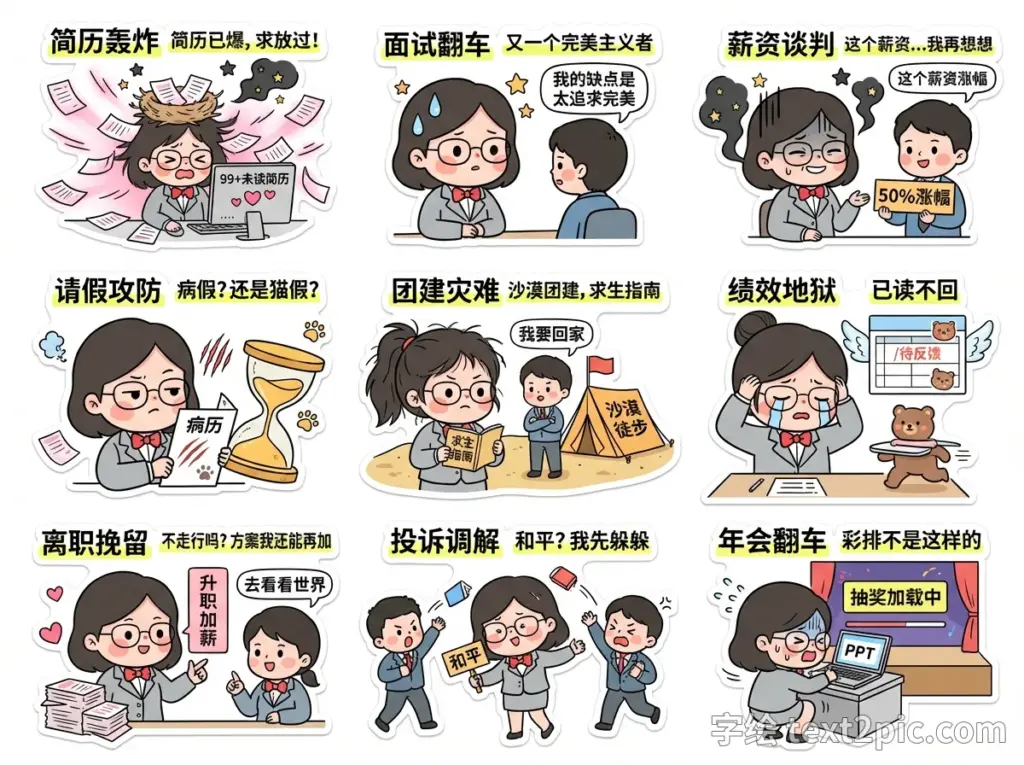 3×3矩阵呈现HR女生日常崩溃瞬间: