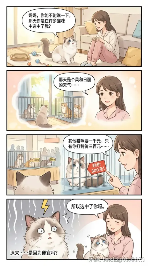 “妈妈,你能不能说一下,那天你是在许多猫咪中选中了我?”
