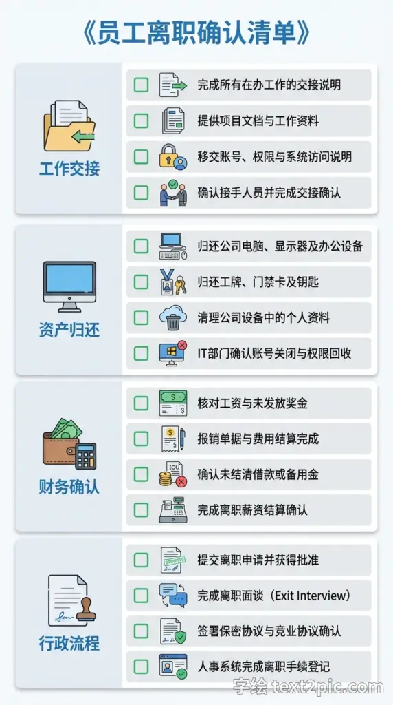 整洁的企业信息图布局,每一行是一条横向 checklist。