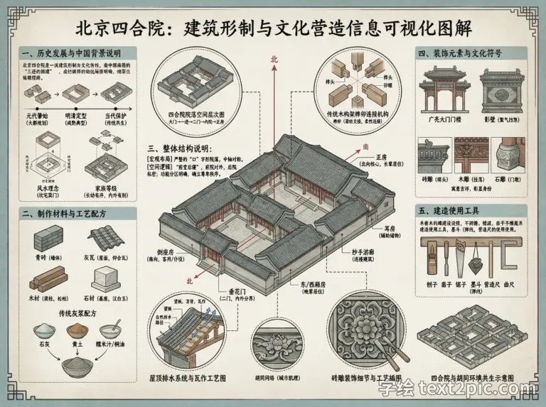 生图提示词: 制作一张关于北京四合院的信…